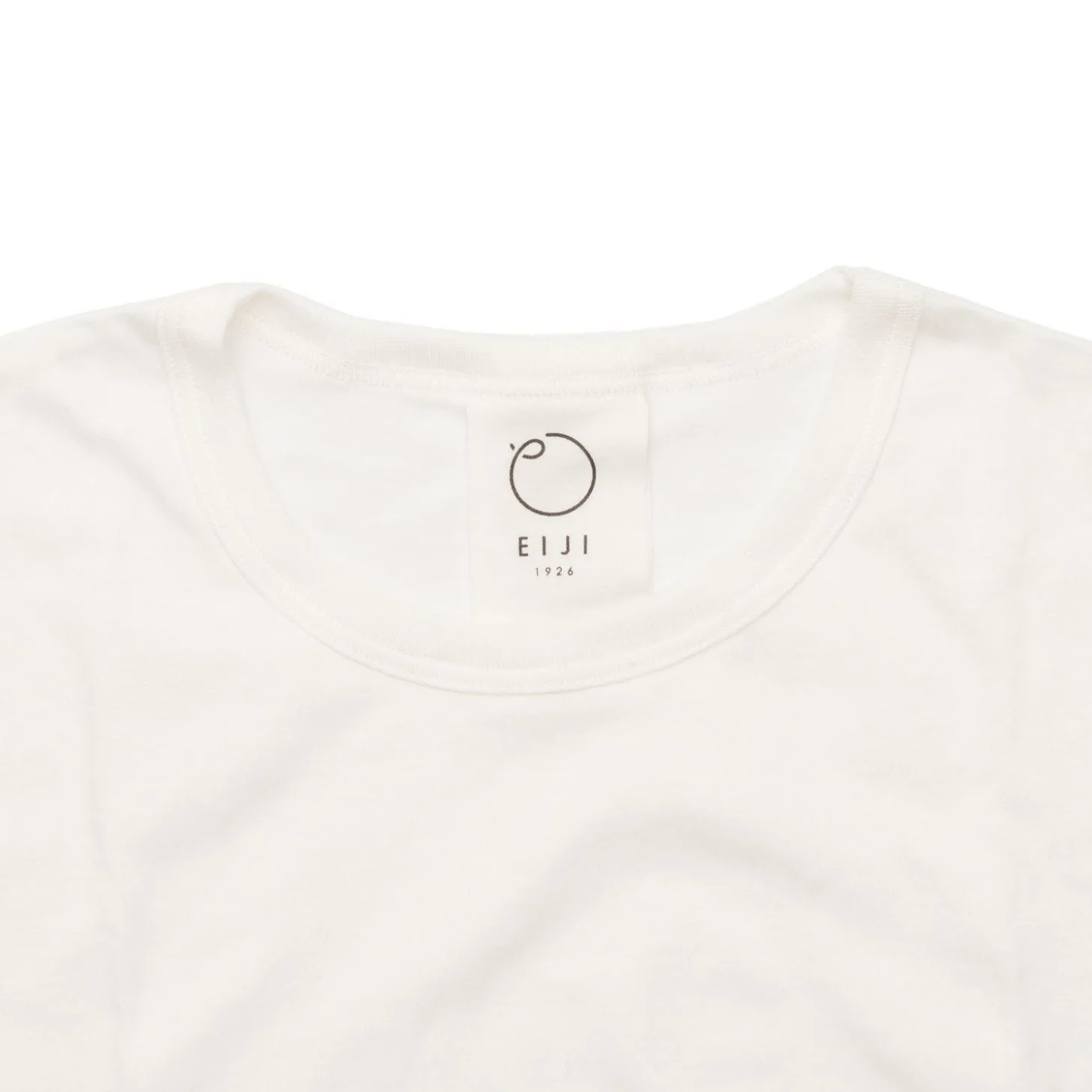 We have produced our order with two subtle side seams as opposed to Eiji’s singular back center seam for a more traditional style with comfortable slim-ribbed crew neck