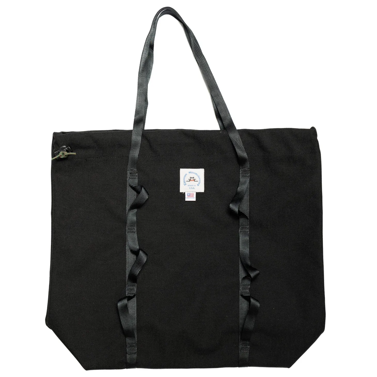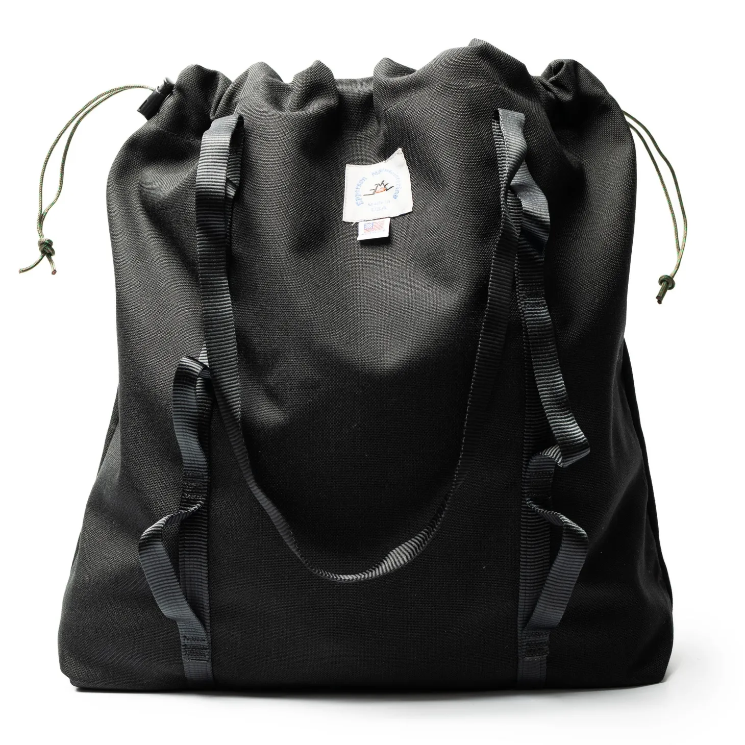 Epperson’s Large Climb Tote combines the casual portability of a classic tote bag with the ruggedness of durable rock climbing gear. Water-resistant Cordura nylon fabric combined with mil-spec tubular nylon webbing make it rugged and durable while snap button closure and climbing-spec webbing (a chain of small loops reinforced with bar-tacks) along the face of the bag increase utility and provide the iconic climbing aesthetic.