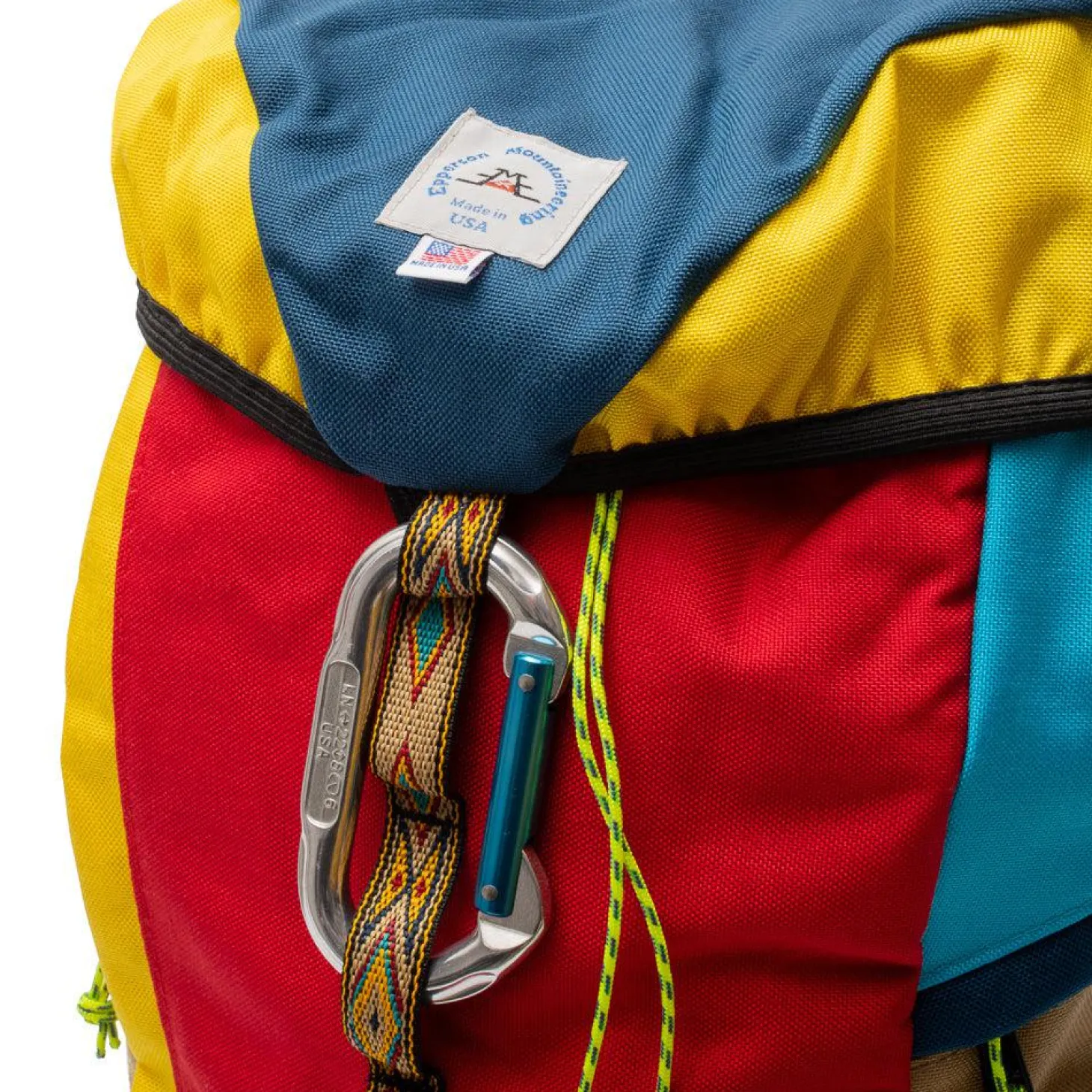 Probably Epperson’s signature model and certainly the most recognisable. The Large Climb Pack offers easy-access portability in a high capacity pack, well suited for day to day use as well as weekends in the hills and further travels. The design aesthetics are easily traced to the climbing rope bags, with the cylindrical design and draw cord closure. Each colour is vividly striking and draws to the classical styling of the 70’s & 80’s. EM’s experiences climbing with the backpack led to the addition of the distinct and easy-to-use carabiner front closure which now defines the pack. Each backpack is constructed using premium, American-made components, making them as tough as the climbers who inspired them.