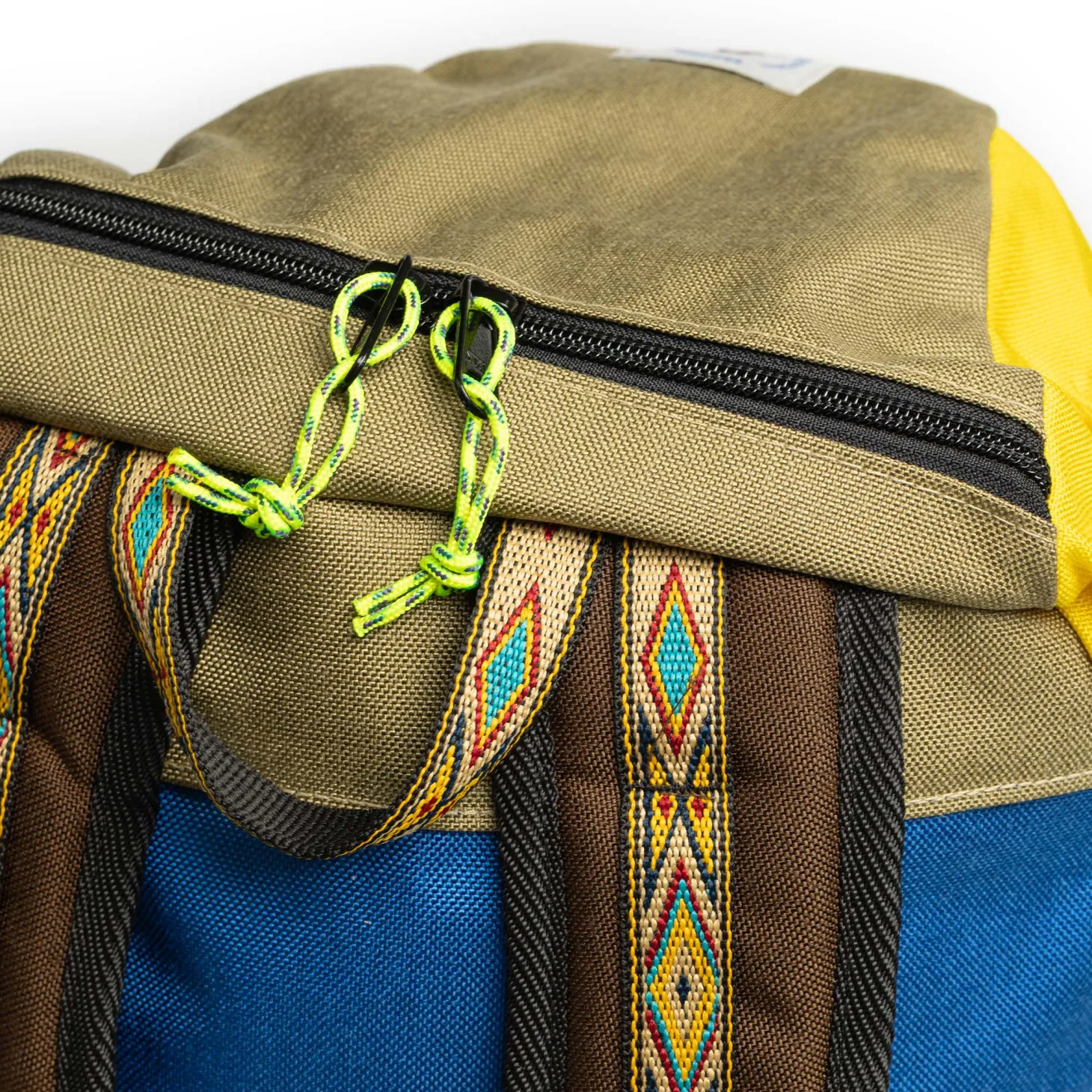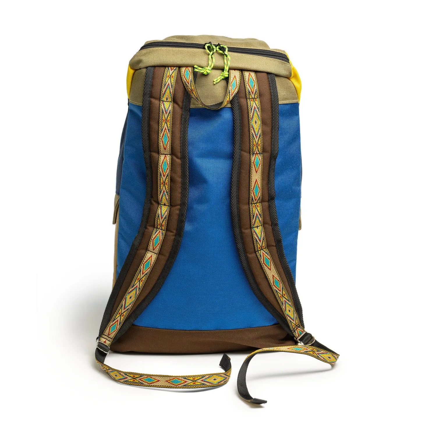 Probably Epperson’s signature model and certainly the most recognisable. The Medium Climb Pack offers easy-access portability in a high capacity pack, well suited for day to day use as well as weekends in the hills and further travels. The design aesthetics are easily traced to the climbing rope bags, with the cylindrical design and draw cord closure. Each colour is vividly striking and draws to the classical styling of the 70’s & 80’s. EM’s experiences climbing with the backpack led to the addition of the distinct and easy-to-use carabiner front closure which now defines the pack. Each backpack is constructed using premium, American-made components, making them as tough as the climbers who inspired them.