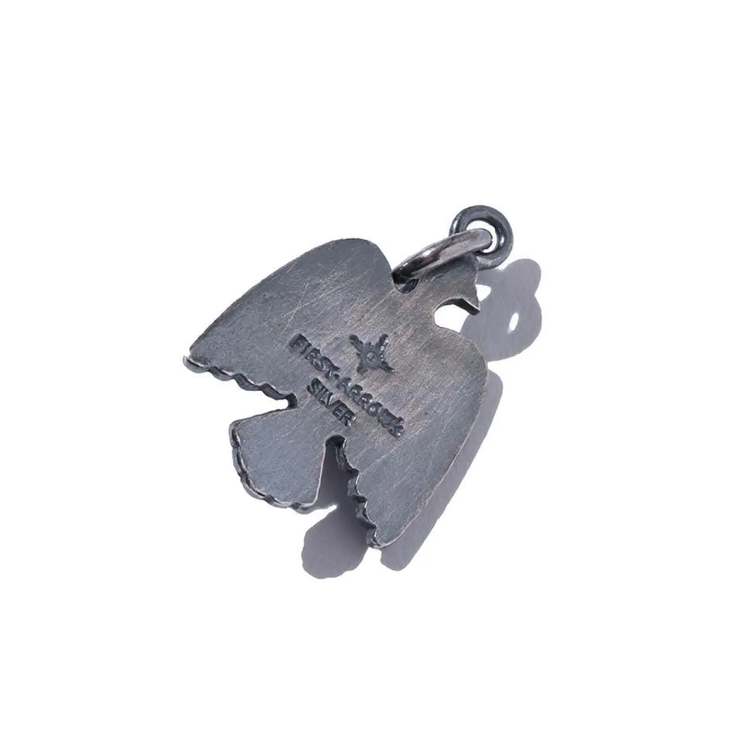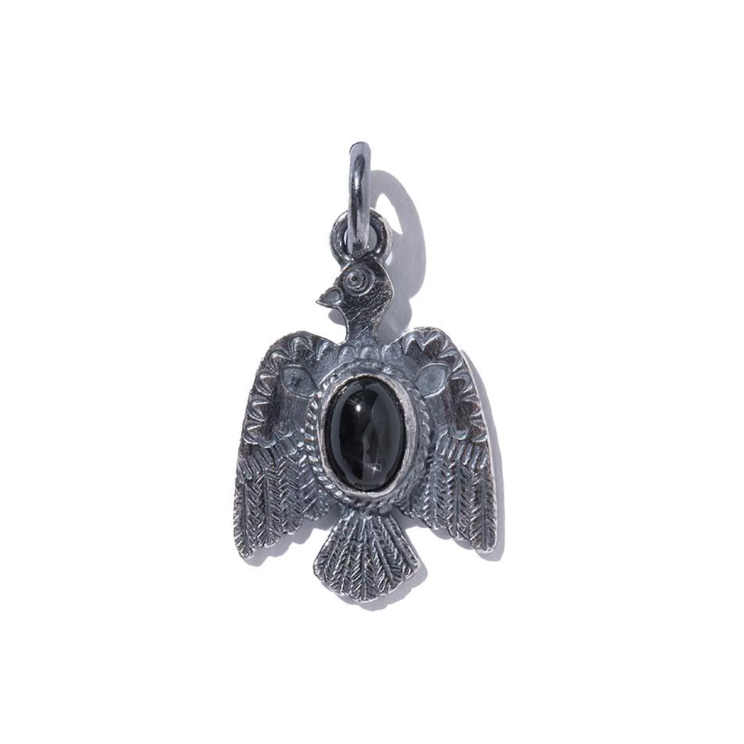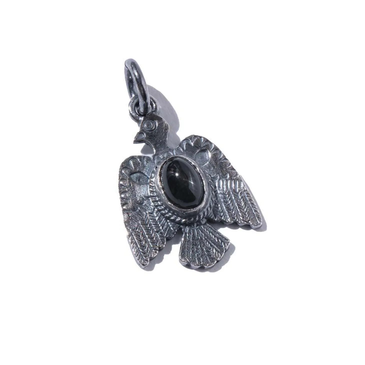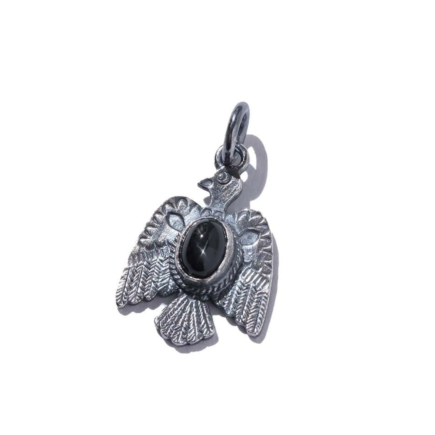 Produced in Tokyo, the Thunderbird pendant from First Arrow’s is cut from 950 silver in Japan and features a blackstar stone in the centre. A perfect accompaniment to your chain or necklace.