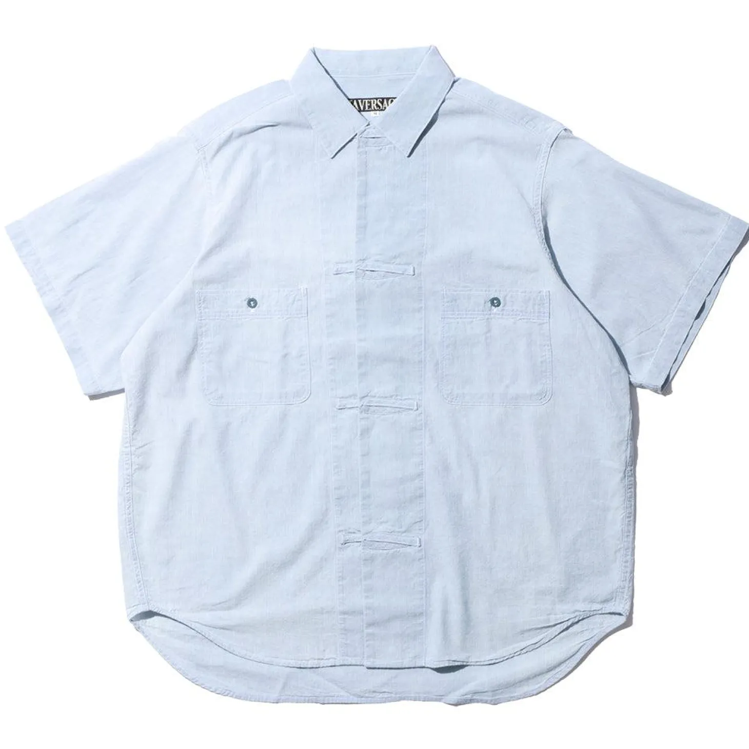 The S/S Shirt from Haversack is cut from 100% cotton in Japan, coming in a lightweight, washed chambray. Two chest pockets have been paired with a button front with contrasting stitching used throughout. A loose fit and rounded hem completes the look.