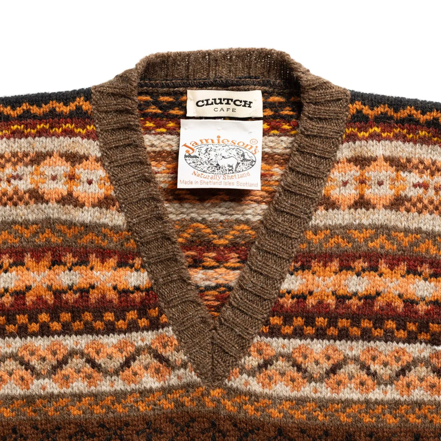 Made in Scotland, our Shetland Sweaters from Jamieson’s have been brushed for extra extra softness & texture, giving it an almost lived in look & feel. This Fair Isle Slip Over also features a ‘v’ neck collar and traditional saddle shoulder, knitted from 100% Shetland wool, coming in an intricate & traditional fair isle pattern.