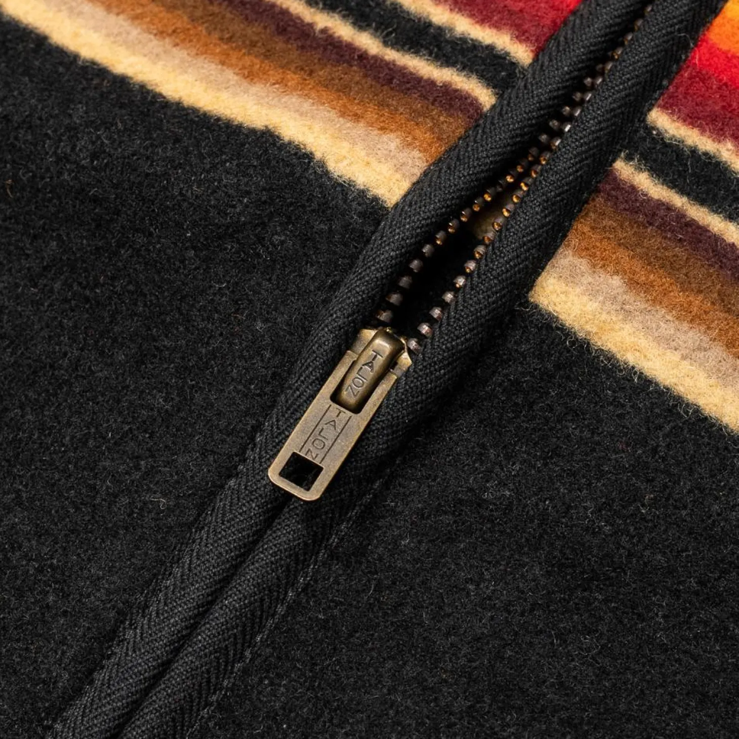 - Backed black cotton herringbone cotton on zip front, sleeve openings and pockets