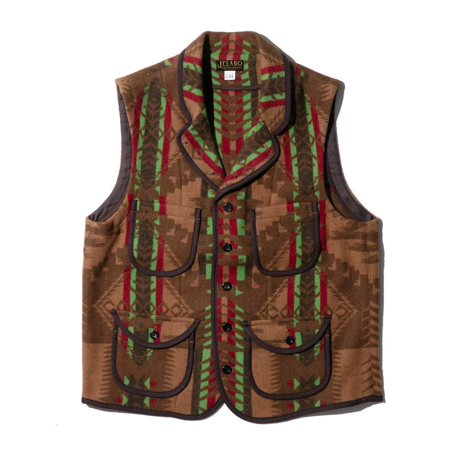 Coming in an intricate blanket pattern this season, the Yellowstonw Vest demonstrates Jelado’s unique approach to vintage blanket pattern design and showcases Japanese craftsmanship at its very finest. Cut from 100% wool in Japan, the fabric has been woven to achieve the blanket pattern inspired by an original 30’s design.