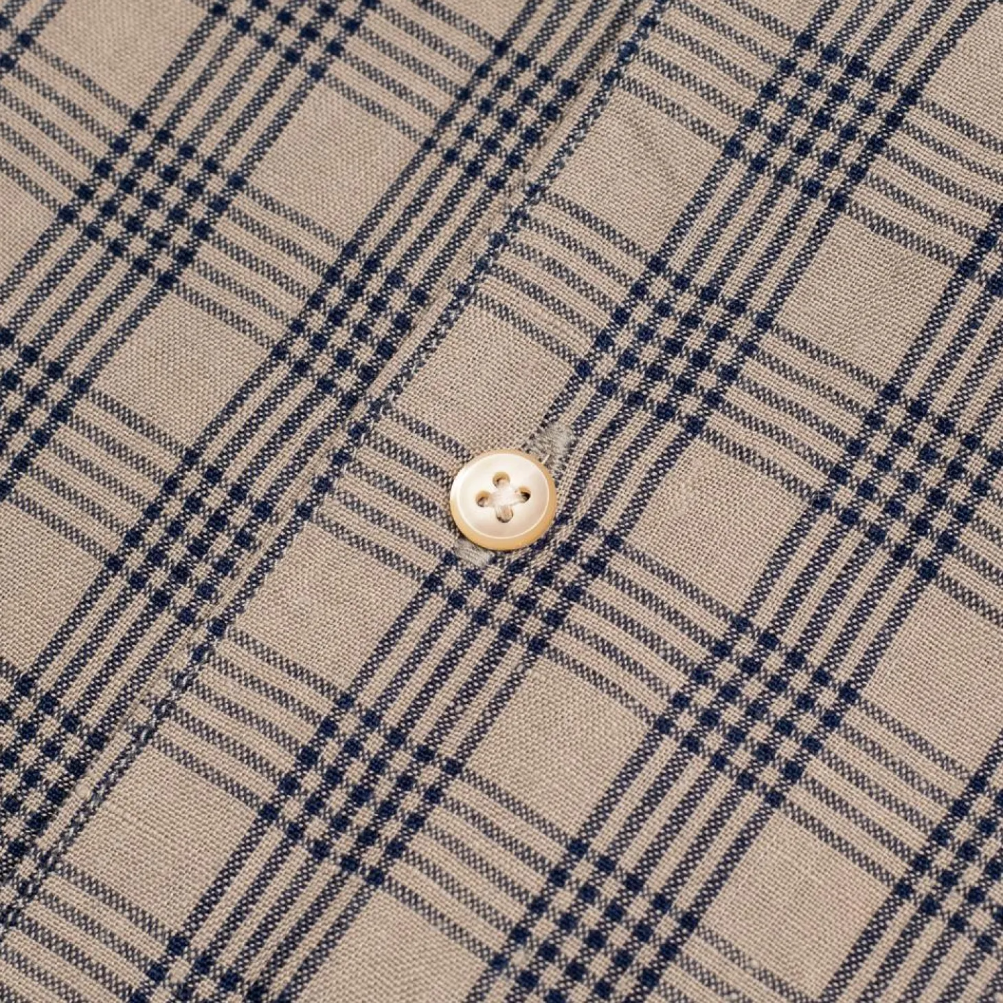 A button front has been paired with a relaxed fit while a curved hem and intricate check colour-way completes the look.