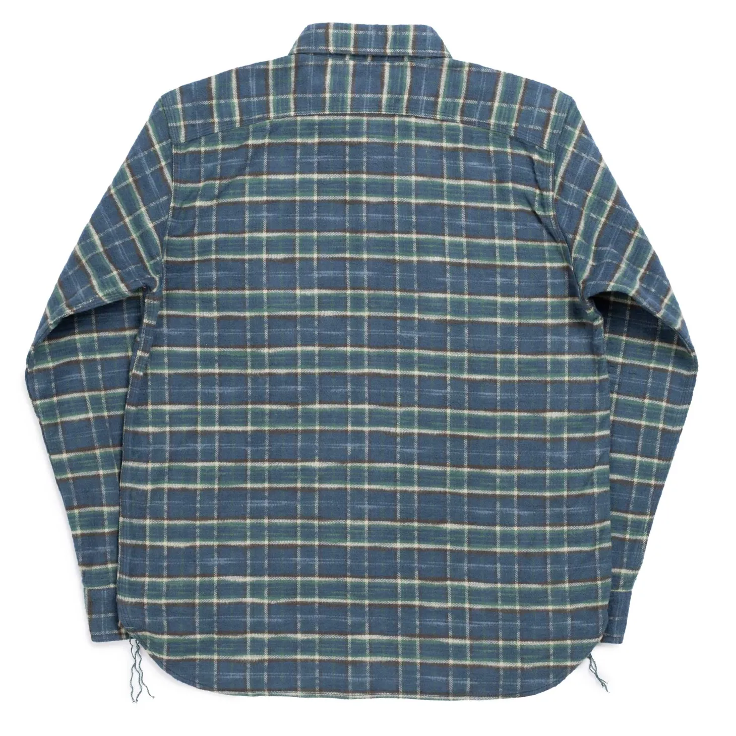 Styled after classic work shirts from the 1930’s, it features a spearpoint collar, gusseted shirt tails and asymmetrical chest pockets. The pocket construction is borrowed from Big Yank work shirts of the 1940’s and features one large buttoned right chest pocket with pen slot and smaller ‘gatchapoke’ bellows pocket on the left.