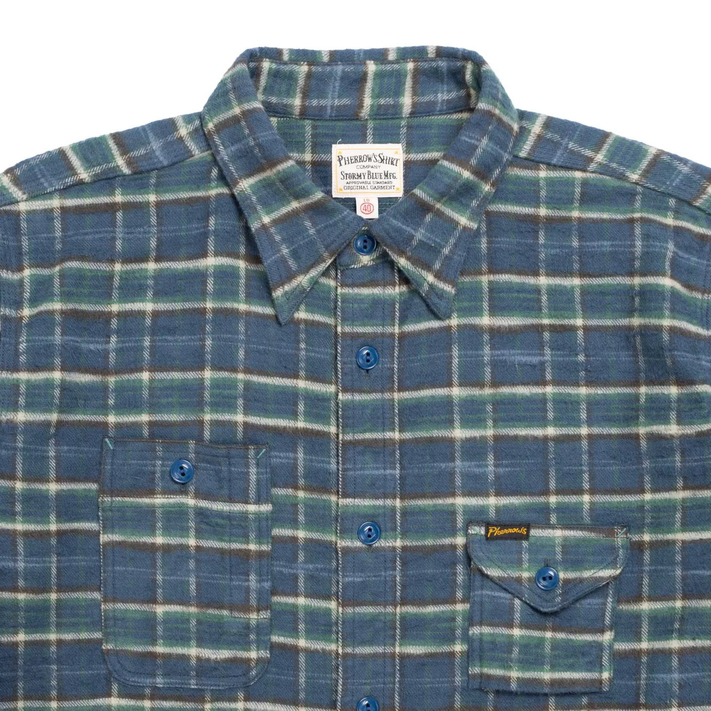 A classic in the Pherrow’s seasonal collections, the 24W-750 Work Shirt is a loosely woven shirt, cut from 100% cotton in Japan. This Autumn/Winter season Pherrow’s have used a slubby yarn for the warp giving the fabric a slight neppy handle.