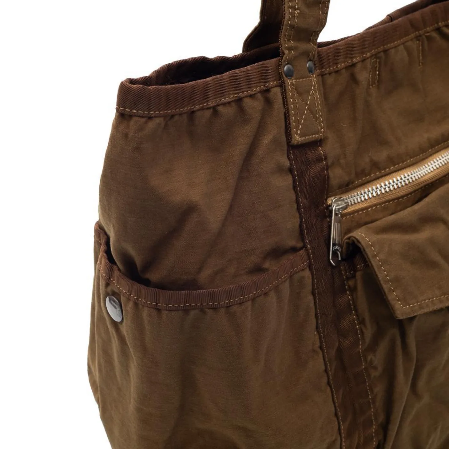 The Tote Bag features nylon webbing throughout and features two interior compartments. There are multiple pockets on the front and side for excess carry and storage with zip and snap closure, while it can be carried with the top handles.