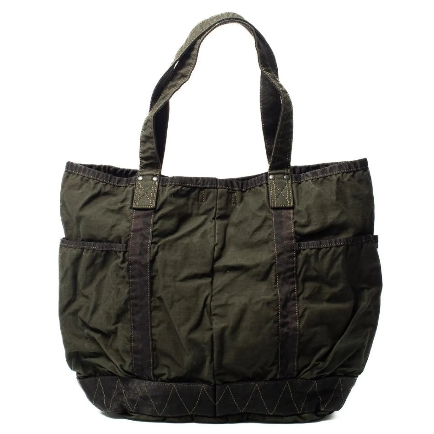The Tote Bag features nylon webbing throughout and features two interior compartments. There are multiple pockets on the front and side for excess carry and storage with zip and snap closure, while it can be carried with the top handles.