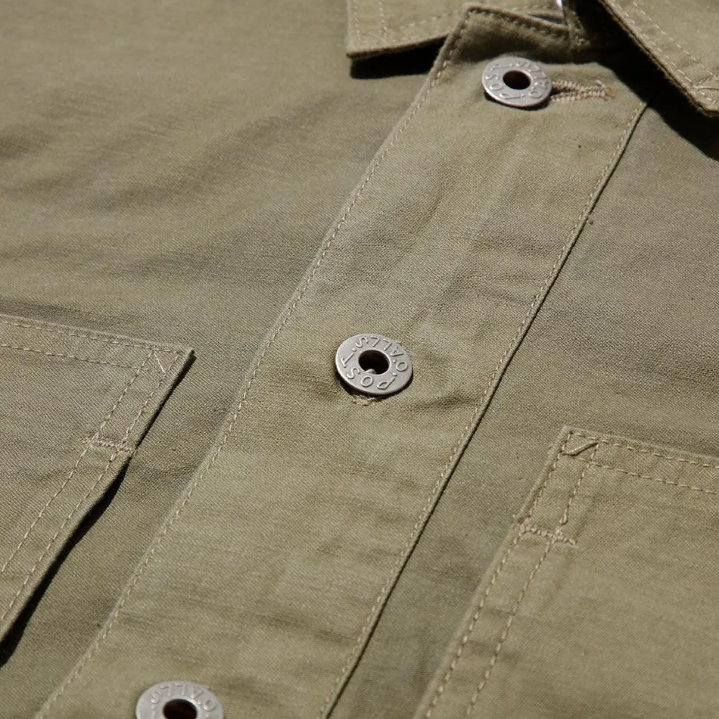 The Army Shirt from Post overalls is a modern take on a rare and hard-to-find vintage US Army Denim pullover. Denim became a standard fabric used by the army as early as 1919, replacing the brown cotton duck work clothes that were previously issued. The pullover was standard issue until the 40s when a jacket with lower pockets and a buttoned up front replaced it.