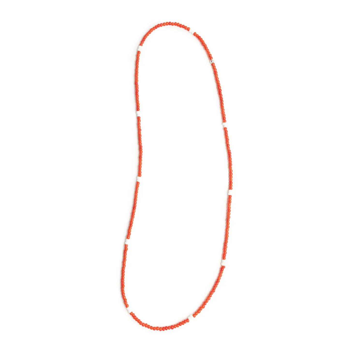Everyone needs at least one of these authentic African glass trade bead necklaces. Great by themselves, layered up or with your favourite pendant. Each is hand strung on 26lbs test cable and finished with a sterling closure. Approximately 13’ drop (26” total) colours include red with white and blue with white.