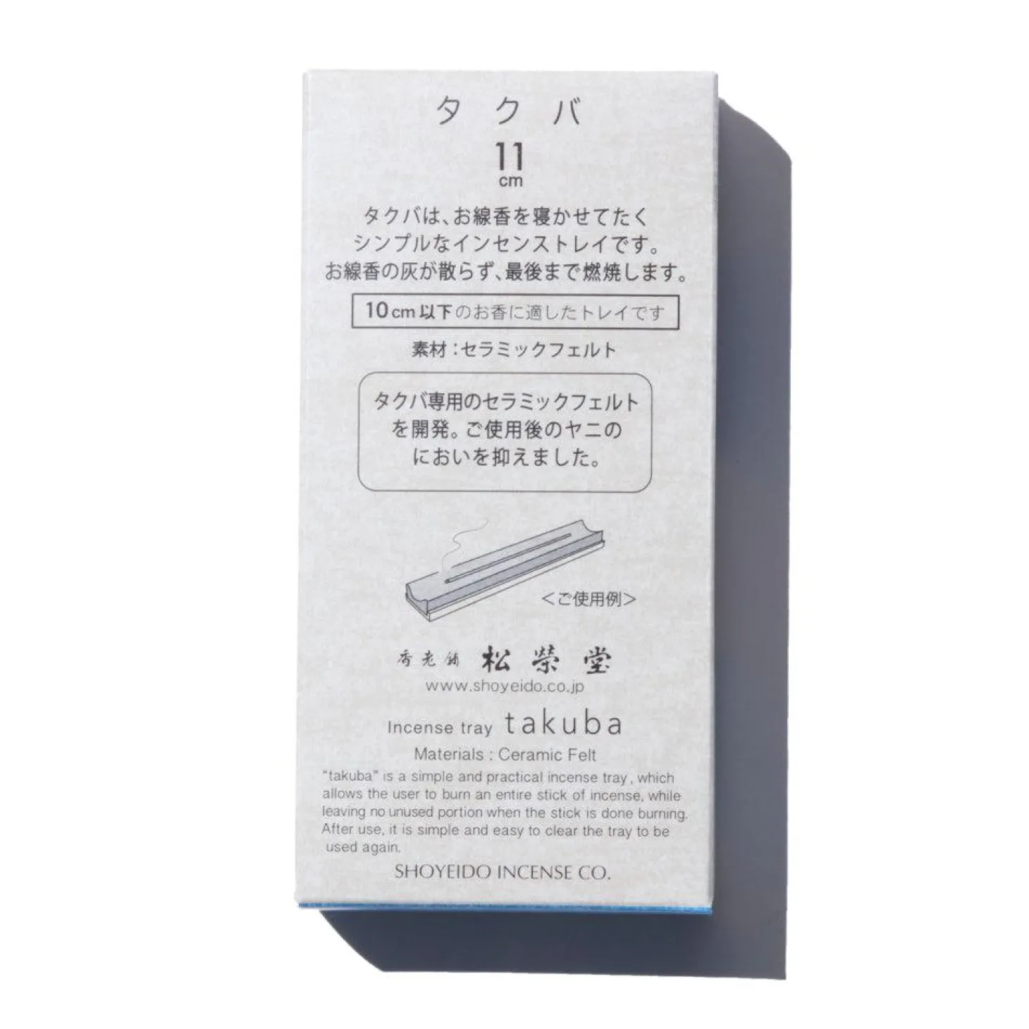 Takuba is a simple and practical incense tray featuring heat-resistant ceramic felt, which allows the user to burn an entire stick of Japanese incense (i.e., pure incense without a wooden core) — with no unused portion left over! Once the stick has finished burning, discarding the incense ash from the tray is easy.
