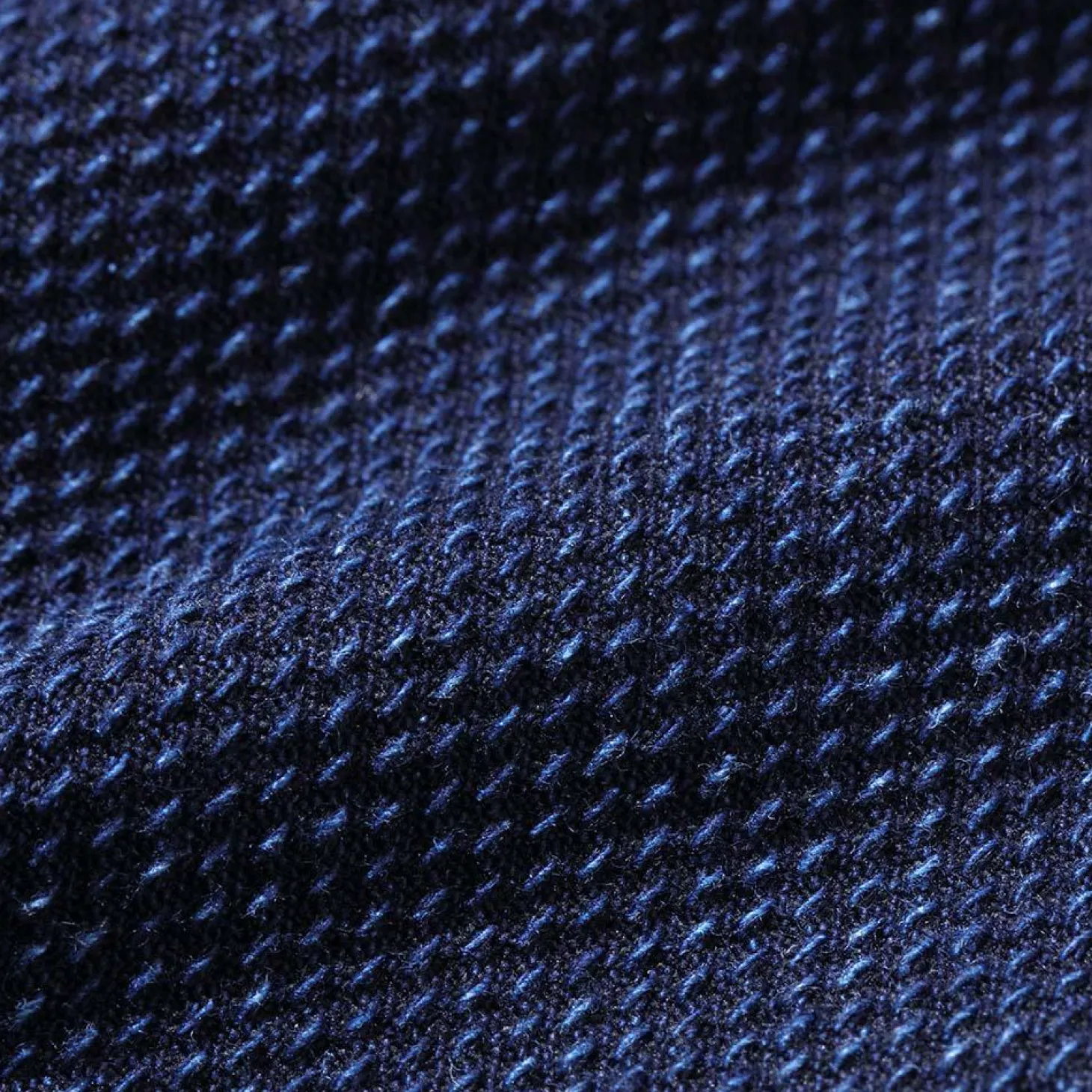 The Marcy features double slanted pockets with ample space to house pens, pencils or brushes as well as a single chest and lower pocket. Constructed from a washed indigo sashiko in Japan, the Marcy also features a button front and cinch on the back to adjust fit as necessary.