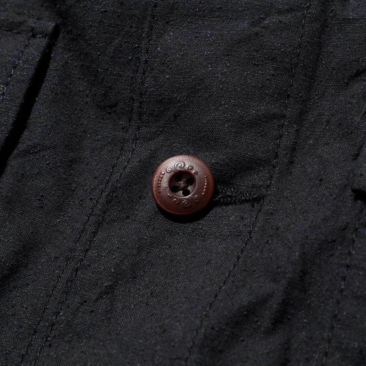 Cut in Japan from a cotton & silk mix, the jacket features a button front with two pockets with button flap closure and hand warmer slots.
