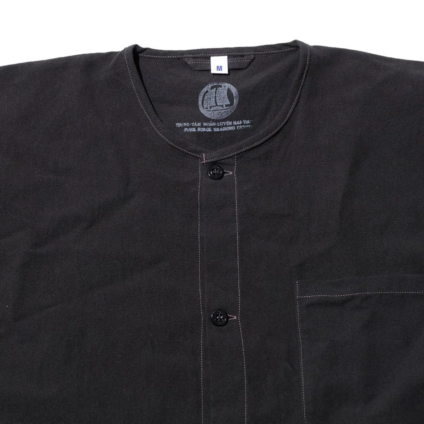 The Pajama Shirt from The Real McCoy’s for SS24 forms part of their ‘Junk Force’ line and is inspired by the uniforms adopted for tropical climates borrowed from local workwear with a close resemblance to Vietnamese farmers clothing. The Junk Force Advisors were formed in the 1960’s and were a paramilitary organisation known as the ‘Black Pajama Navy’ or simply nicknamed the ‘Junkies’.