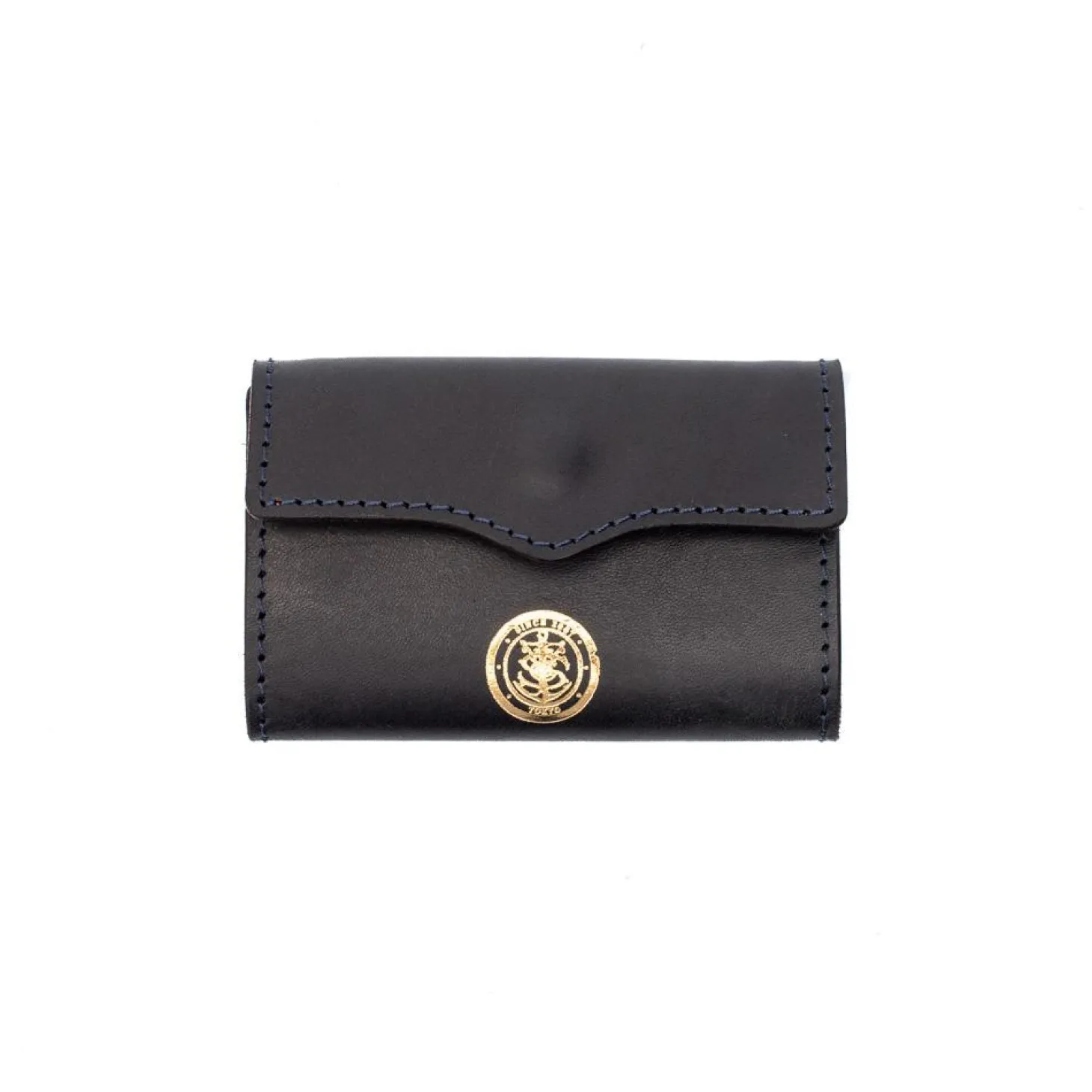 Inside there are a four brass key-hooks riveted through the leather lining and invisible from the outside and singular card slot. The key is secured with a singular brass snap and fished with Vasco’s fouled anchor symbol embossed in gold leaf on the outside and with the company’s name on the inside.