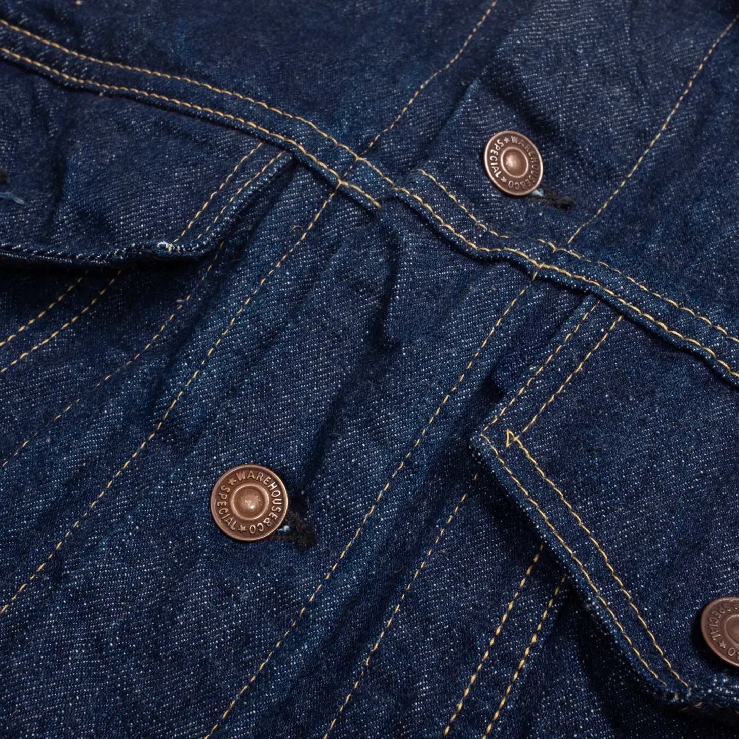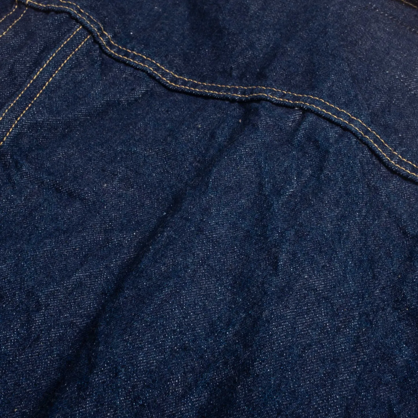 True to their authentic reproduction nature, Warehouse & Co have nailed this one. Cut from a 13.5 oz selvedge denim in Japan, the 2003 xx features the distinctive ‘V’ shaped stitching at the front, which at the time was a significant move away from the Type II Denim Jacket. Two chest pockets with button closure feature lighter weight denim behind the flaps (true to the originals) as well as copper brown buttons & yellow cotton thread used throughout. A period correct paper patch and side adjusters complete the look.