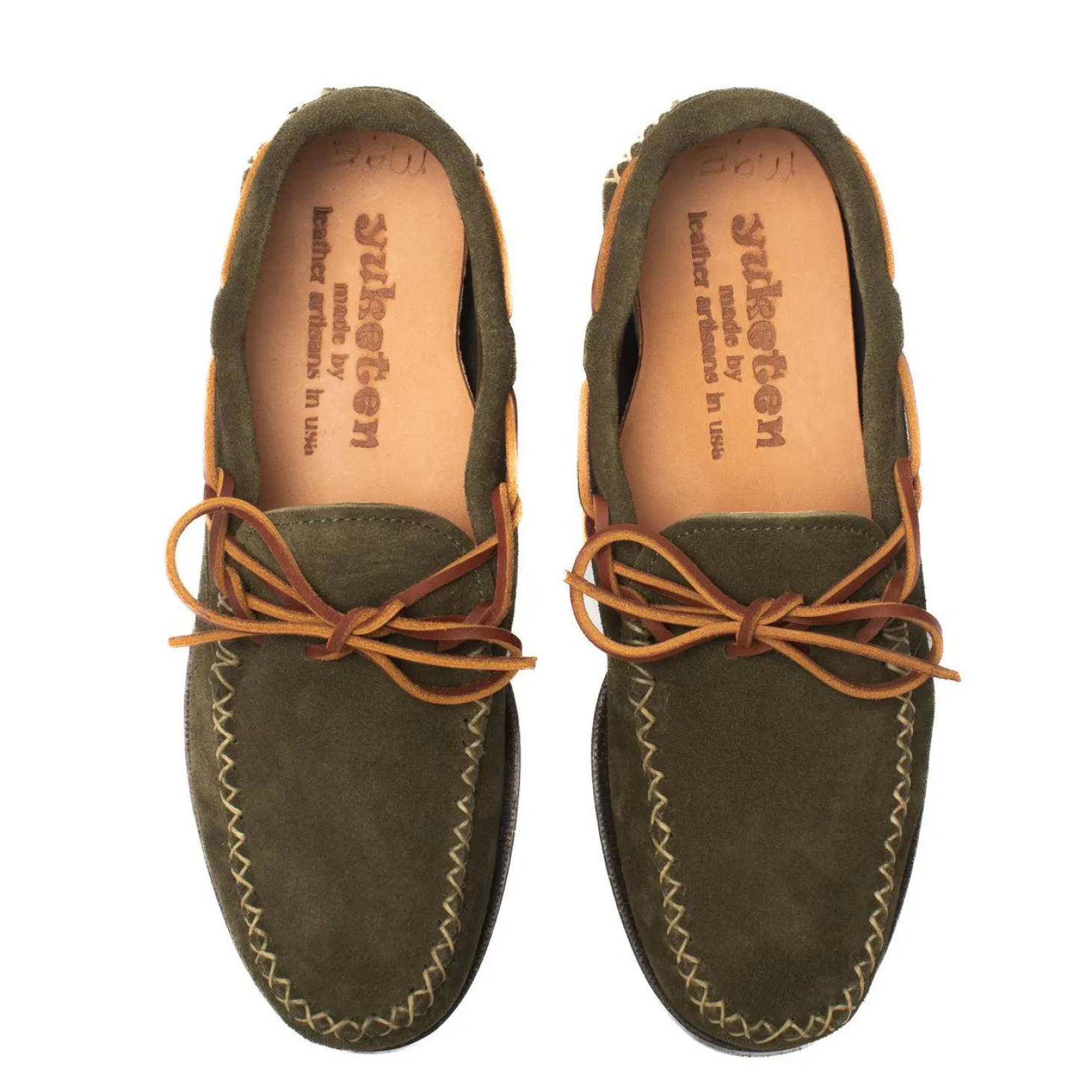 The Canoe Moc from Yuketen is based on a popular variation of the Mocassin, while the lacing technique is borrowed from the lacing method used by veteran river and stream guides for improved adjustability on 360 degree lace-through loafer shoes to provide a more secure fit in wet conditions.